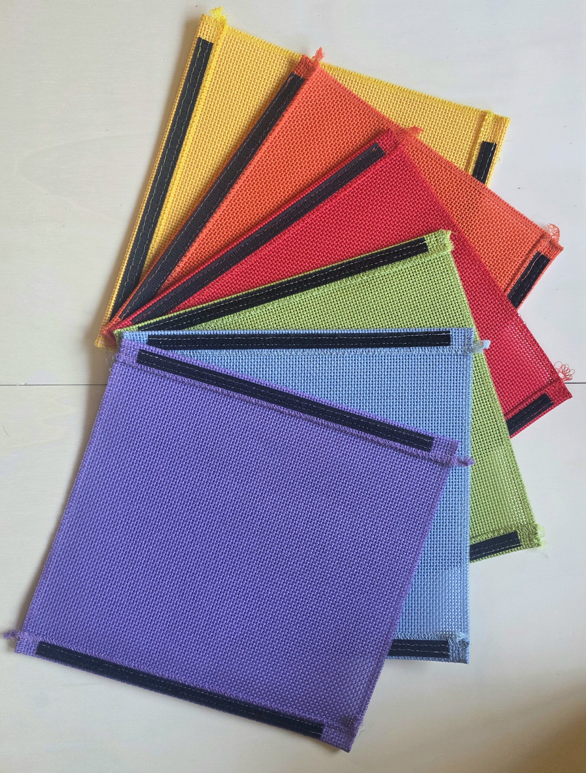 Kanten versäubert, mit aufgenähtem Klettverschluss,